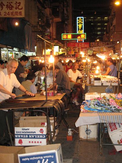 Hong Kong’s Mong Kok — translated as “flourishing or busy corner” — is an area famous for its night markets where tourists and locals descend to buy a dizzying array of goods including lower-end electronics, fresh produce, clothing, toys, snacks, CDs, DVDs, knock-off designer bags, quasi-antiques, local crafts, and what can politely be referred to as “marital aids.” Lining the streets are a seemingly incongruous assortment of open air food stalls and fortune tellers.
