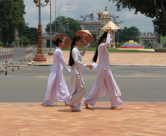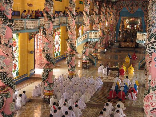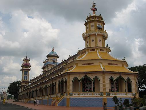 First stop: The Tay Ninh Holy See, home and main temple of the Cao Dai indigenous religion. Cao Dai was established in Vietnam in the 1920s; the religion combines the tenets of Buddhism, Christianity, Confucianism, Hinduism, Islam, Taoism and spirituality/ancestor worship.