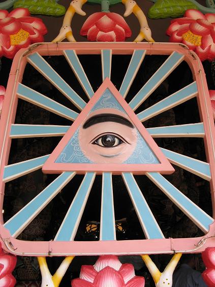 A common motif: The all-seeing eye, symbolizing God as He appeared in the first vision establishing the Cao Dai faith.