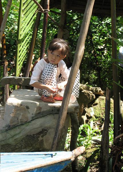 The waters may look filthy, but the murkiness is due to silt, not pollution. Other than the occasional leaves, branches and fruit peels, the passages were relatively free of debris. I observed many locals swimming, bathing (with clothes on — not unusual) and washing clothes along the banks. Modest private homes with sampans line the canal.