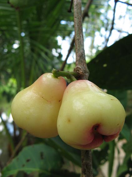 Water apples… Also unripe. I sampled these for the first time in Hong Kong. Refreshing.