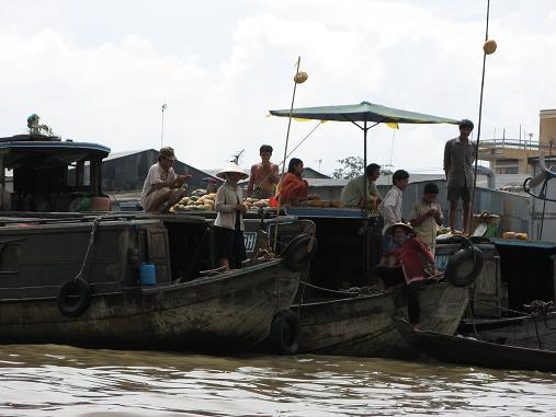 Then off to visit the famous floating markets of Can Tho. I’d seen one of these near Bangkok a couple of years ago, but this was an altogether different experience: much larger, and not a tourist offering in sight. By 7:30AM, Cai Rang Market was buzzing with locals, picking their way through all the fresh fruits and vegetables on offer.