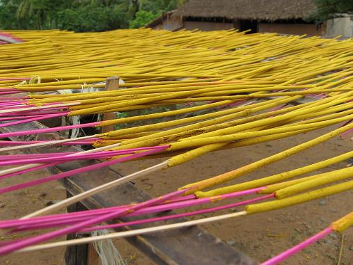 Incense sticks drying in the sun.