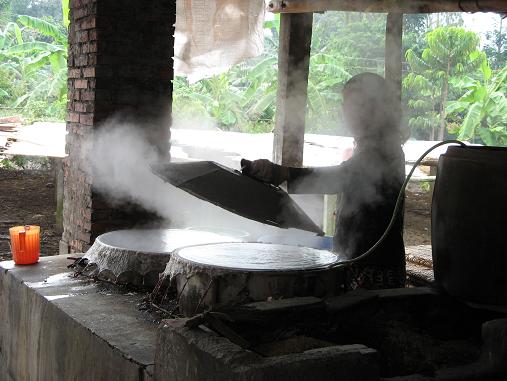 Steaming rice papers, to be cut up into noodles, or made into summer rolls:
