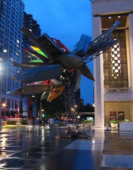 So no Didion. I returned to the apartment, trading my blanket for an umbrella, and set out for a walk. Over at Lincoln Center, the Midsummer Night Swing musicians were packing up their instruments, and the plaza was cleared of dancers, save one lone couple swaying together in the drizzle.