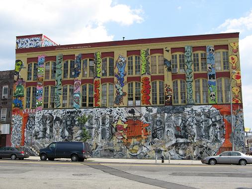 5 Pointz, down the block from P.S. 1, is the latest incarnation of the a 200,000-square space on Crane Street. The space, formerly known as Phun Factory, billed itself as the world’s largest aerosol art museum. After a landlord-tenant dispute in 2001, Pat DiLillo, the group’s founder and director, stepped down. Onetime artist Meres, ne Jonathan Cohen, took over the project, rechristening it with its new name to symbolize NYC’s five boroughs coming together as one, and continues to offer a place for graffiti artists to showcase their work. The building originated as Gimbel’s former warehouse.