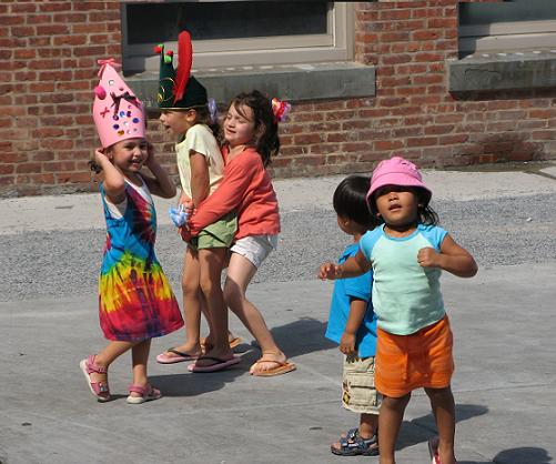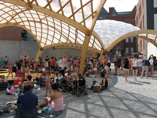 The overhead shells and cool misters provided some relief from the heat and sun, which by this point, was becoming almost unbearable. Small children and babies everywhere – in the pools, at the craft stations, in the origami tent. And on the dance floor: from our vantage point on the concrete steps in front of the DJ booth, we watched a few busting out some excellent moves to the grooves (in the heart) of Deee-Lite.