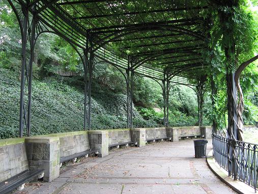 The six-acre garden is so named for the massive glass conservatory that stood on the same spot at the turn of the 20th century. During the Depression, when upkeep of the facility became too expensive, the conservatory was demolished and replaced with the present Garden, which opened to the public in 1937. The entrance on East 105th Street is marked by a black wrought iron gate that once graced the entrance to the Vanderbilt mansion.