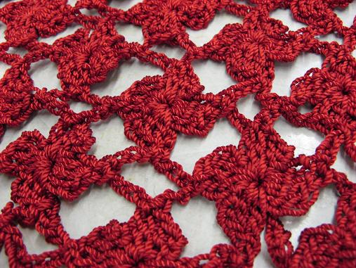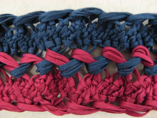 We reviewed our patterns from last week and launched into hairpin lace crochet. This technique, unlike the others we learned during the course, is worked on a small handheld loom, sometimes called a staple – actually a two-pronged fork of adjustable width – on which one makes interconnecting loops using a crochet hook. Early practitioners of this craft worked their stitches onto an actual hairpin, giving the technique its name. The result is an open, airy weave, suitable for lace and edgings, or interconnected to form a lightweight fabric. The ends can also be cut for fringe, left free-hanging as loops, or finished off.