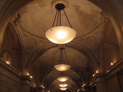 Here, the ornate white marbled grand arcade, with elaborately scrolled arches and overhead domes (with “GLIC” detail):