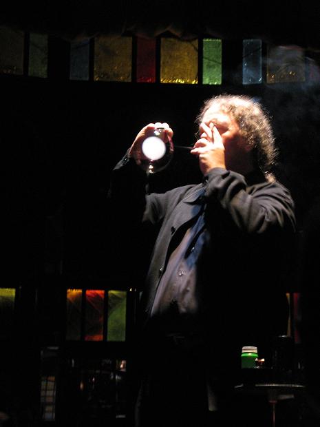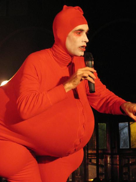Despite several postings — including one prominently displayed at the box office — advising that the show was NOT SUITABLE FOR MINORS, someone had actually decided to bring a six-year old boy to the performance. As the comedian Red Bastard observed, “Well, the kid’s gotta learn sometime!” Indeed: his act was followed by Ursula Martinez’s unforgettable magic striptease, which had the male members of the crowd — and a few female members — howling in appreciation. Check out her site for a description of the “Hanky Panky” act. No photos of that one.