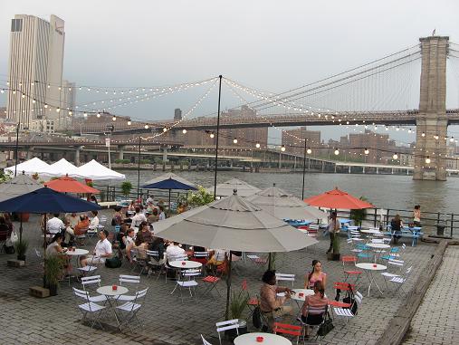 The tickets were all for general admission seating (the spiegeltent seats up to 320 in the round), so we arrived at the pier early to line up. Heartland Brewery set up a biergarten outside the tent, so we could drink in the beautiful bridge views with our Summertime Apricot Ales.