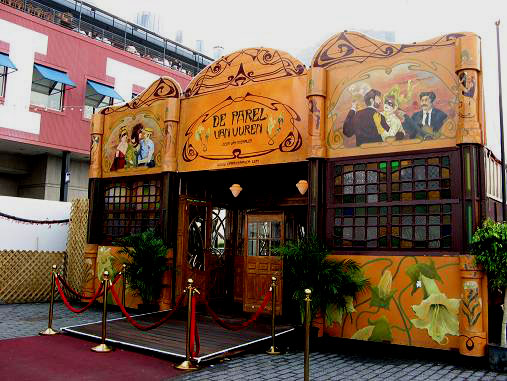 Spiegeltents (“mirror tents”) were an early-20th-century European creation; these hand crafted pavilions were used as traveling cabarets, dance halls, bars and entertainment salons. The one at South Street Seaport’s Pier 17 through September is one of the few originals remaining in the world. Since being built in 1926, the elaborately decorated tent of colorful leaded glass, mirrors, teak, brocade, and velvet, has traveled throughout the world before making its way to the southern tip of Manhattan last week.
