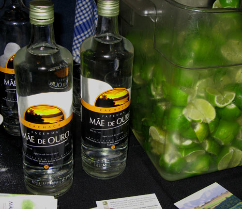Our favorite at the IXP was the Cachaça Fazenda Mãe de Ouro. “Cachaça Dave” Catania was there, promoting his authentic, small-batch pot-distilled cachaça by mixing up rounds and rounds of his delicious caipirinhas throughout the night. We were in fact, so enthusiastic in our praise and interest that Dave ended up giving us not one, not two, but FIVE imprinted wooden pestles — or muddlers — for making our own caipirinhas at home. That’s five each, ha!