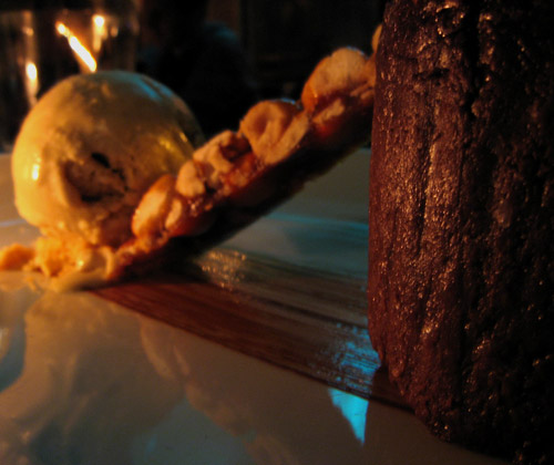 And for dessert, we shared the sinfully rich chocolate fudge cake with salted peanut brittle and Guinness ice cream, and new menu item cherry-vanilla creme brulée, and glasses of muscat dessert wine.
