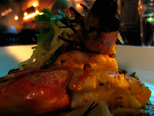Grilled tandoori prawns with ginger braised Napa cabbage, Asian pear and Punjabi cashew sauce. (M had the grilled lamb tenderloin and merguez sausage with ancho spiced chickpeas and a radish queso fresco salad.)