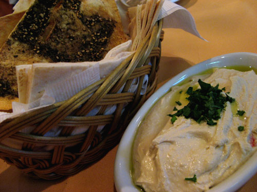 So much of the menu looked tempting, but we finally decided upon three appetizers and three entrees, two of which were special off-the-menu recommendations by our enthusastic server (who, given the huge publicity jump this place received a few weeks ago, is no doubt accustomed to directing Tanoreen newbies.)