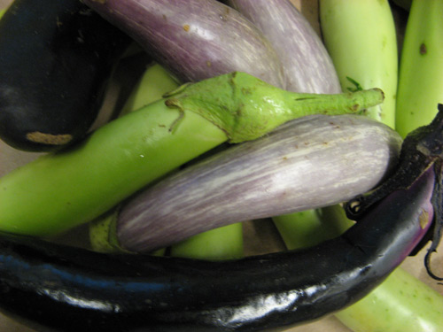 A few quick runs of the knife at home, and within minutes, I was enjoying my own homemade version of Public’s salad (sans pumpkin seeds and artistic presentation): crisp, sweet, creamy, and filling without being at all heavy. Then it was on to the cooking: after browning the fresh lamb in some olive oil and butter, I tossed in a good portion of my CSA haul from last week: three varieties of eggplant, two varieties of peppers, onions and tomatoes. And then the spices — my best approximation of the Tanoreen blend: pepper, cinnamon, fresh nutmeg, cloves, allspice, coriander, cumin, dried ginger and lots of fresh garlic. No dried rosebuds in my pantry, though. The spicy smells permeated through my apartment well past midnight, but I ended up with a good-sized pot — enough for a few meals, at least.