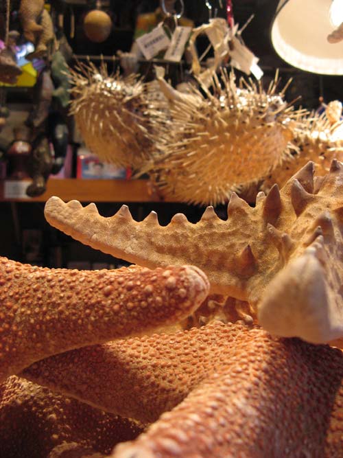 Starfish and Porcupinefish for sale at the Marine Specialties store: