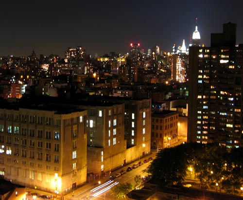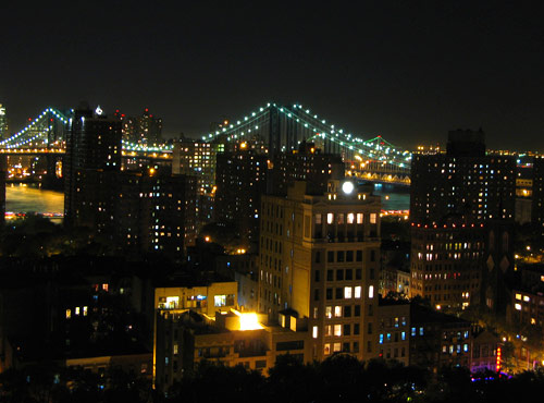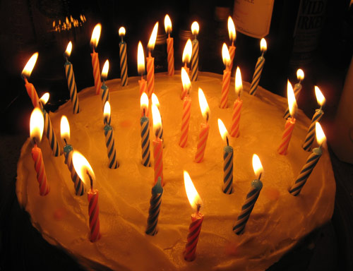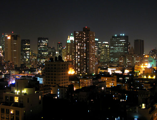 After another stop for what may have been the most expensive ice in Manhattan – $6 for two bags?! Grrr… – we arrived at AH’s top-floor apartment where the party was in full swing. I spent most of the night out on the balcony, admiring her views over lower Manhattan. AH had baked another one of her wonderful cakes for the occasion: this one a carrot and walnut layer cake with cream cheese frosting, that HYB lit afire with birthday candles.