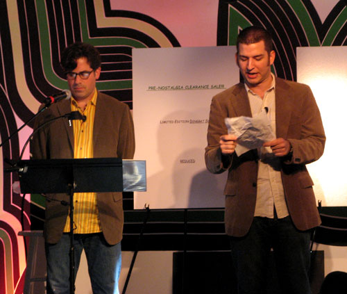 The story was a little slow getting started — the audience at first seemed… perplexed — but as it built some momentum, and the men threw themselves into character, it was quite funny. A brief question and answer period followed, during which there was the predictable fawning over Lethem, who is apparently rather well-versed in pop-culture.