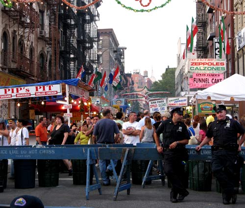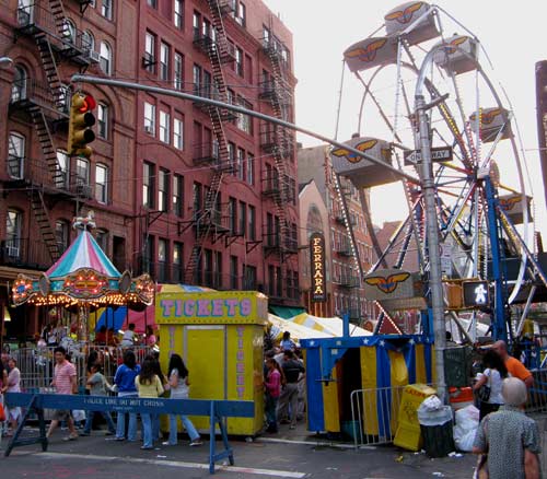 Over to Little Italy, where the 79th Annual Feast of San Gennaro was taking place. If we hadn’t been so full of noodles, we would have picked up some zeppoles. Oh, I’m a sucker for zeppoles — all sugared, hot, fried dough treats, actually.
