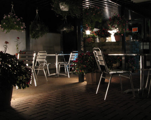 A quick shot to 61st Street/Woodside on the 7 Express. From there, it was a just few blocks walk under the elevated subway tracks along Roosevelt to our destination. A second round of expansions and renovations in late 2004 had doubled the Sripraphai seating area to 70 (not including the back garden) and transformed the once utilitarian space into a more welcoming spot. I wasn’t sure what to expect (since clearly the food, and not the ambience, is the main draw), but considering that the owners probably needn’t have bothered too much with creating a pleasing dining area, they’ve done a decent job. We bypassed the main room for the garden tables out back, which was far prettier than I had expected: landscaped, with a central burbling fountain, and a perimeter lined with flowered shrubs — and one curious cat.