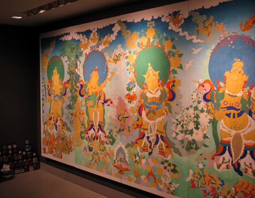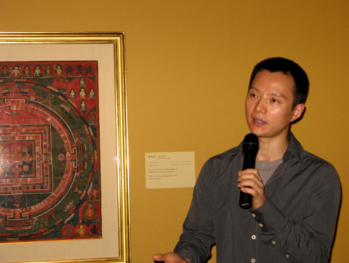 I was back at the Rubin Museum of Art on Friday night for the Artists on Art presentation by Shen Wei, the choreographer behind New York-based contemporary dance company Shen Wei Dance Arts. Wei and one of the RMA guides gave a brief talk about mandalas — the graphic representations of the universe in Hindu or Buddhist culture. The museum had several of the intricate circle-within-a-square images on display. Chinese-born Wei explained how he drew upon the variety of the mandalas he came across on a recent trip to Tibet as inspiration for the dance forms he used in Re-, (Part I), his performance work based on the spirituality of Tibetan culture which is being performed at the Joyce Theater September 26 through October 1, 2006. Also in attendance that evening was Ani Choying Drolma, the Tibetan nun who sings the music in the show.