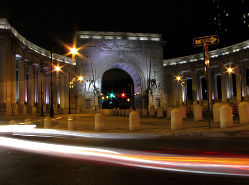 Here, the Manhattan Bridge arch at Bowery and Canal, which SYB noted, is a pretty entrance to an ugly bridge. For the past several years, the bridge has been undergoing major rehabilitation, in preparation for its December 31, 2009 centennial celebration. The Manhattan Bridge was the third and last of the suspension bridges constructed across the East River (after the Brooklyn and Williamsburg Bridges.)