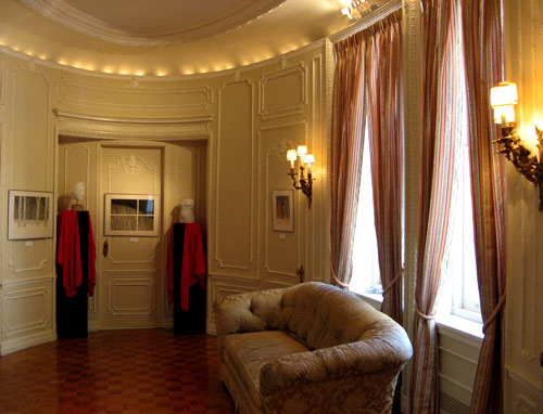We popped inside just as the Director’s tour was beginning on the second floor. An assembled crowd of about a dozen people were gathered around him in the stately gallery, as he explained some of the history surrounding the 1899 house, originally known as the “Isaac and Mary Fletcher House,” now landmarked as the “Harry F. Sinclair House.” Financier and art collector Isaac D. Fletcher commissioned architect Charles Pierrepont Henry Gilbert — usually referred to in architectural sources as C. P. H. Gilbert — to build a house using William K. Vanderbilt‘s Loire Valley chateau as its model, on the property which was originally the Lenox farm. Gilbert designed mansions for many of the leading families of New York, including several homes on “Millionaire’s Row,” and in Park Slope. Also a suite of townhouses at 72nd Street and Riverside Drive and the Joseph R. DeLamar mansion at 37th Street and Madison – now home to the Polish Consulate.)