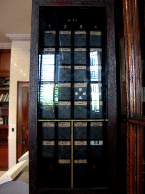 Call box for the mansion’s many servants, located on a wall of what was the first-floor kitchen — now used for the Institute’s adminstrative offices:
