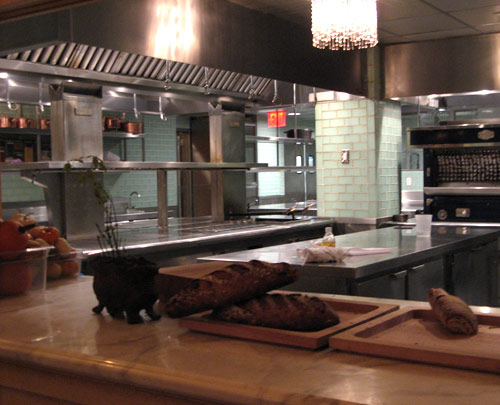 The view from the chef’s table into the open kitchen of Chef Geoffrey Zarkarian upstairs restaurant, Country Restaurant and Café: