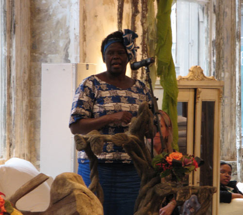 Later, I attended a book launch and reading for The Green Belt Movement founder and 2004 Nobel Peace Prize winner Wangari Muta Maathai. Matthai was promoting her memoir, Unbowed, in which she recounts her remarkable journey from a farm in the highlands of Mount Kenya to becoming the first woman in Eastern and Central Africa to earn a doctoral degree, the first woman in the region to chair a university department, and the first African woman to receive a Nobel prize.