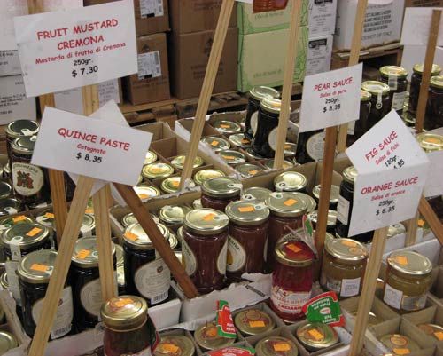 The store will be hosting a Fresh White Truffle Festival on November 13 and 14 between 6:00 and 9:00PM, serving white truffle dishes and tastings of Italian wine. What a delight this market is: stacked crates packed with olive oils, vinegars, biscuits, tinned fish, sauces, jams and pastas — fresh, frozen and dried in an endless variety of shapes. Also walls of impressively well-stocked dairy and meat cases. I had trouble deciding on my purchases, and finally settled upon some pumpkin ravioli, a hunk of pancetta and a bottle of orange-flower water (from France, not Italy.)