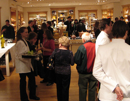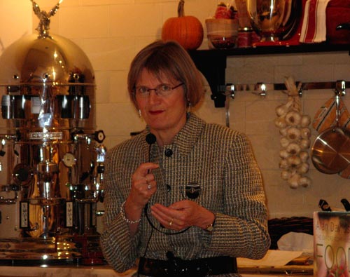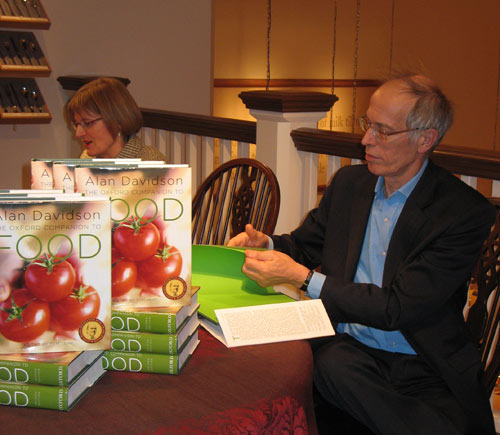 Tom Jaine, editor of The Oxford Companion to Food, and Jancis Robinson, editor of The Oxford Companion to Wine, were each giving a brief talk at the Williams-Sonoma inside the Time Warner Center. The usual assortment of foodies were gathered, including what appeared to be students from a wine tasting class, and my sometime Sunday morning cooking instructor, John.