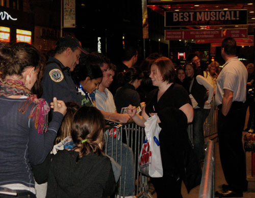 I suspect that at least a few of the people there were waiting not for Durig, but for a glimpse of American Idol Season 3 runner-up Diana DeGarmo, who rejoined the Hairspray cast in September after a three month stint earlier in the year.