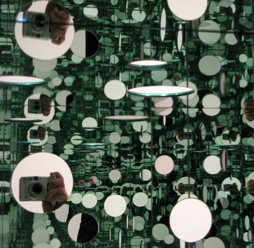Tonight I attended a reception at the Robert Miller Gallery in Chelsea with the gallery curator, who was on site to introduce the Yayoi Kusama exhibition. The exhibition (on display through November 25) consisted of paintings, sculptures, mirror works, light installations and silkscreens by one of postwar Japan’s most influential artists.