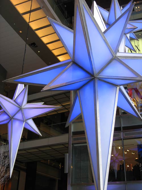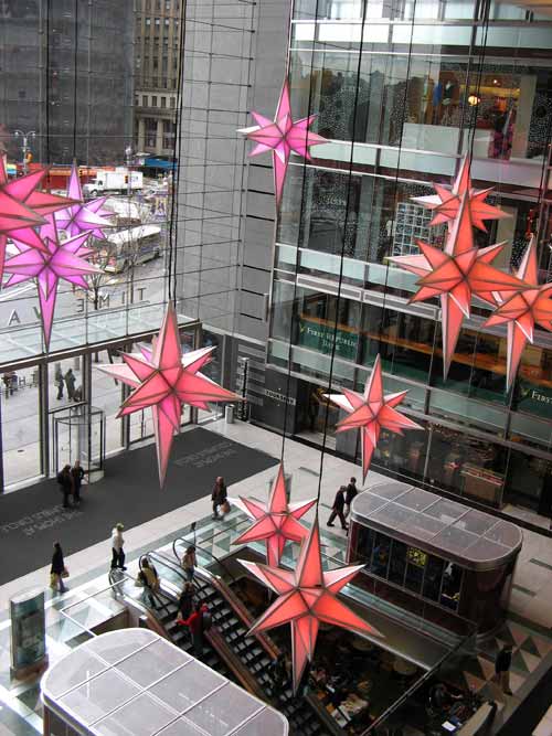 Changing colors of the Time Warner Center Holiday Stars: