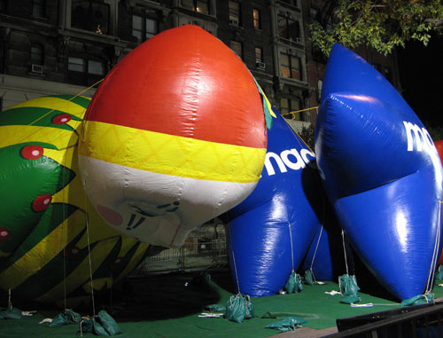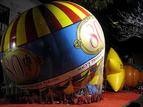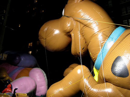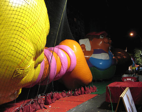 Ah, but one of the best things to do in New York City? Watch the Macy’s Thanksgiving Parade balloon inflation. After dropping off my hard-bought groceries at home, I strolled up towards the blocked off streets around the American Museum of Natural History. The rest of the year, the parade’s stars sit inside a four-story warehouse that spans about half a city block. On this night, though, they take up the streets from 77th to 81st Street, taking shape over the course of the day as pumps fill them with helium. It was towards the end of the evening, and the balloons were almost at full capacity, sitting eerily in wait for their proud trip down Central Park West and Broadway tomorrow morning.