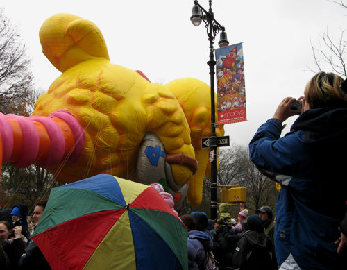 This year’s theme was “Around the World in 80 Parades.” The inclement weather prompted city officials to order the balloons flown lower than usual this year, with none rising beyond 17 feet for safety. I could almost touch Scooby Doo as he went by. During last year’s event, two sisters were injured by debris when a giant M&Ms balloon crashed into a light pole. They attended this year’s parade as special guests of Macy’s… perhaps as thanks for not suing.