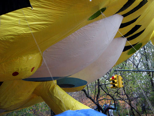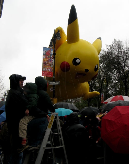 This year’s updated Pikachu balloon with flashing red cheeks. Nice ladder: somebody’s Dad came prepared!