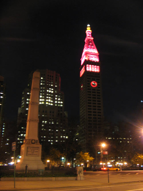Below: The nearby Metropolitan Life Insurance Company Tower, all prettily lit for the holidays. It was the tallest building in the world for four years, eventually ceding the title to the Woolworth Building in 1913.