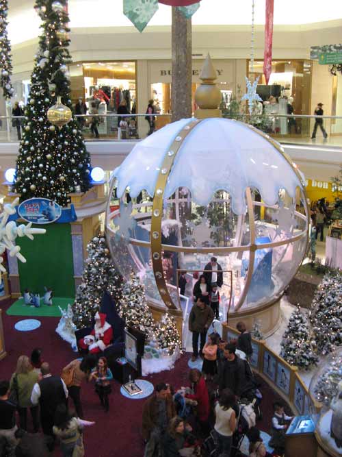At the Mall: penguins everywhere! At the Santa Snow Globe…