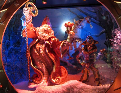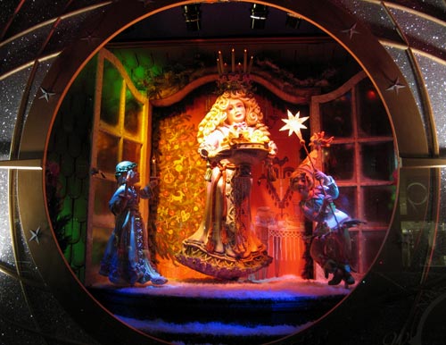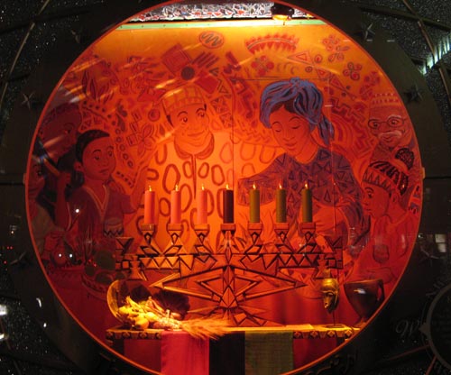 Bloomingdale’s holiday windows: a multi-culti celebration of holiday traditions around the world. The ten windows display tableaux from different-themed winter festivities. Bonus points to Bloomie’s for including Hanukkah and the elusive Kwanzaa… but I found some of their waxen, animated figures just a little creepy-looking.