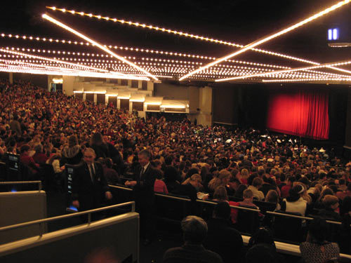 Critics were split over the quality of the show — the Times gave generally favorable marks; the Post liked it somewhat less — which was staged by Martin Charnin, who wrote the show’s lyrics and directed its 1977 Broadway production to seven Tony awards. As holiday fare, though, the quality hardly mattered: every seat in the cavernous Theater was sold, most to families with very small children. I wonder how Mom and Dad felt about accompanying their three decidedly not-so-small children, and two of their spouses. The Charles Strouse-composed tunes were as catchy as ever — “Tomorrow”, “It’s the Hard-Knock Life” — and we could not help but be charmed by the sheer enthusiasm of the able and often adorable orphan cast.