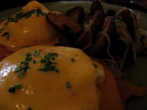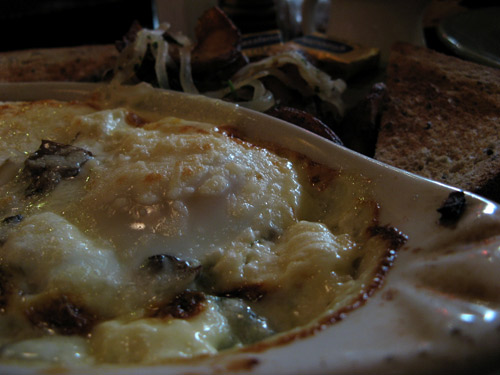 So we ordered hot coffees from the apologetic server to accompany our Basil-Mozzarella Empanadas with Chimchurri Sauce, Norwegian Eggs, and Porcini, Spinach and Goat Cheese Baked Eggs. All delicious, and a fine way to start off Christmas Eve.