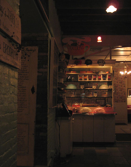 Bubby’s opened in TriBeCa in 1990 as a pie company. The menu has since expanded to cover casual homestyle breakfasts, lunches and dinners; on weekends, Bubby’s serves brunch to crowds of trendy families (and the occasional celebrity.) Even at this after-work dinner hour, M and I felt out of place without a stroller in tow.