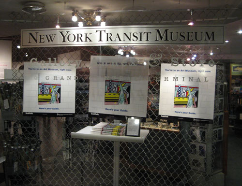 The New York Transit Museum operates a gallery annex and store at Grand Central Terminal, just off the Main Concourse, in the Shuttle Passage next to the Station Master’s Office. Tonight, I was there for the opening reception of the new exhibit, Re:Design — New Visions for the Transit Museum Store at Grand Central. On display through February 19 are eleven proposals to revitalize the Transit Museum’s store developed by graduate students in the Exhibition Design department of the Fashion Institute of Technology. The exhibit features the students’ visions, including new floor plans, models, revamped fixtures, storage concepts, displays, redesigned sales associate uniforms and new graphics identities. The proposals all had to work within the current footprint of the store, with a limited budget, and with little, or minimal alteration to the existing store’s ceiling and floor plans. The winning proposal, or selected aspects of various proposals, will be used by the Museum to refurbish the store.
