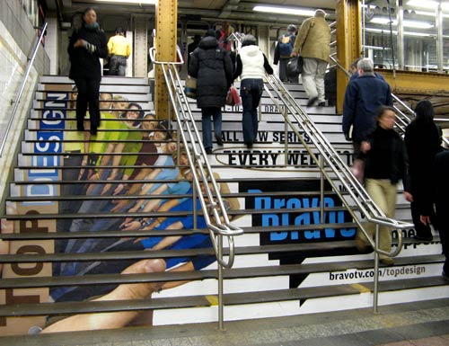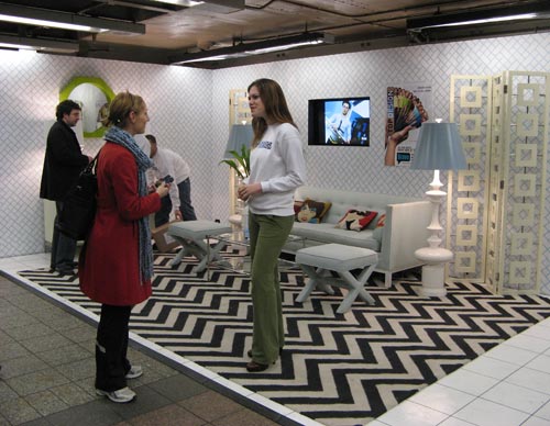 Elsewhere in the station, Bravo’s latest reality show Top Design had taken over, installing several interior vignettes on Grand Central’s Shuttle platform — designed by and featuring lead judge Jonathan Adler‘s line of products.
