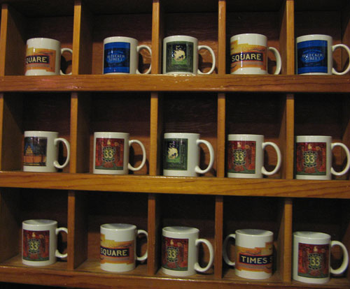The store, which remained open for the reception, is chock full of items emblazoned with MTA logos, for proudly displaying your subway line or station pride. Also for sale are memorabilia and collectibles, such as old tokens, vintage enamel signs, and even parts of decommissioned trains, like the hinged, teardrop-shaped grab holds from the recently retired “Redbird” subway car fleet; the cars themselves are now serving as artificial ocean reefs in Georgia, South Carolina, Virginia, Delaware and New Jersey.